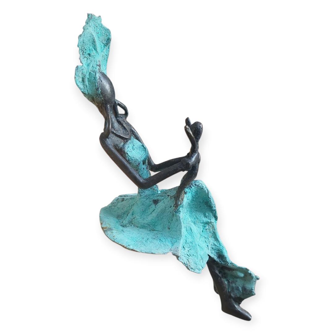 Statuette Artisanale en Bronze – Femme Assise – Vert